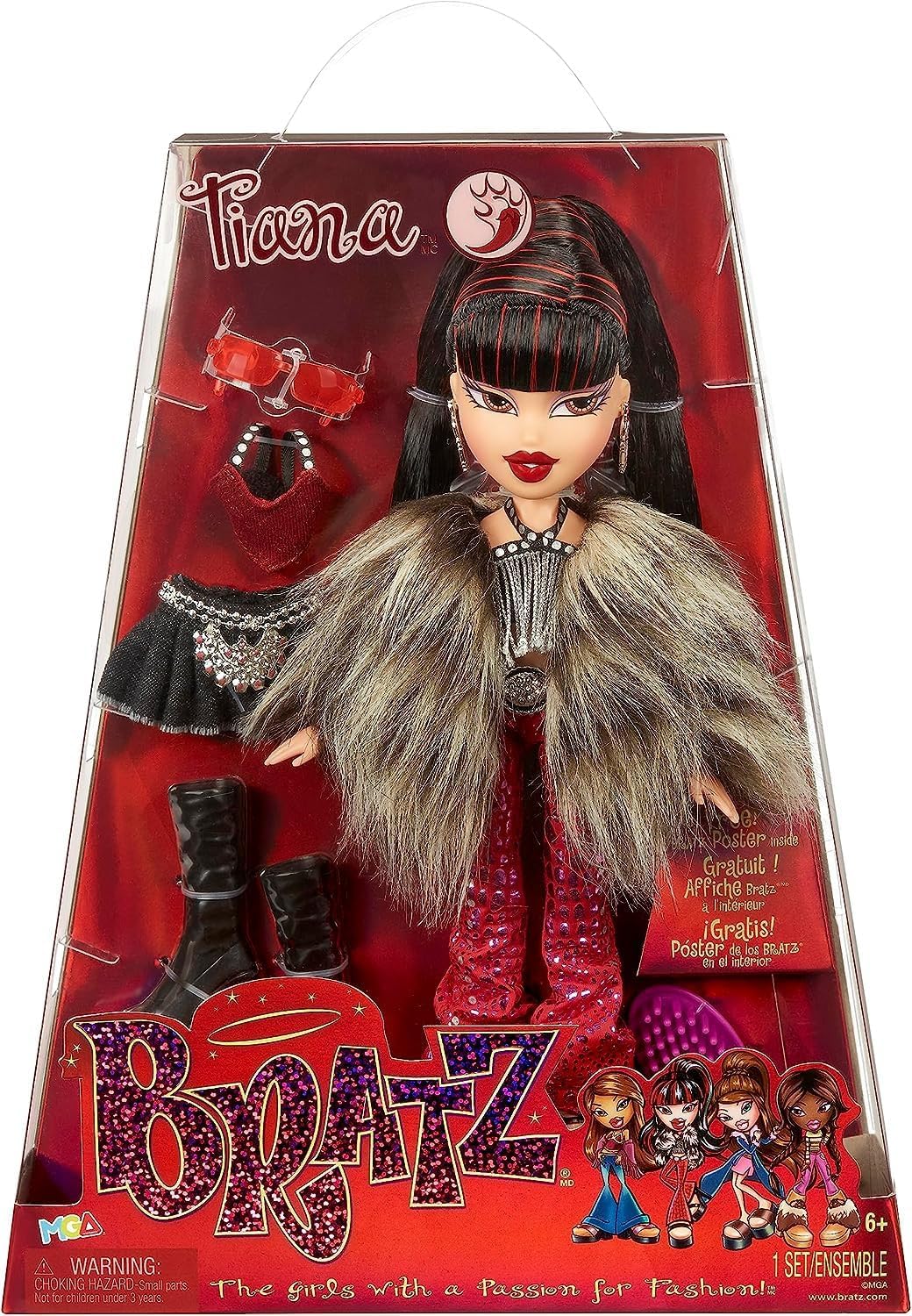 Los coleccionistas y los nuevos fanáticos de Bratz® pueden celebrar a las ‘Chicas apasionadas por la moda’ con estos looks icónicos. #TBT del debut de Kiana con las Bratz como parte del ‘Wild Wild West!’ ¡Recopilación! Más de 20 años después, puedes volver a agregar la icónica primera muñeca Kiana™ a tu colección. Los deslumbrantes atuendos son réplicas casi exactas de la muñeca original, ahora en un nuevo empaque holográfico de edición especial que muestra el estilo personal de Kiana. Kiana™ incluye 2 fantásticos atuendos para muchos estilos de mezcla y combinación, 2 pares de zapatos, una chaqueta y un sombrero. También se incluye con cada muñeca un cepillo para el cabello y un póster holográfico. Los amigos de Kiana la llaman «Outlaw Diva» porque se ve tan hermosa que debería prohibirse. ¡Colecciona las 5 muñecas Bratz® originales: Meygan™, Nevra™, Kumi™, Kiana™ y Dylan™!